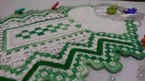 Спасибо! Я еще начала белый,белым по белому...хочу крестильный Вaberito вышить. Шить только белое тяжело...медленно продвигаюсь, и серединку хочу чуть по другому, крестик вышить. В общем, вышью, покажу))) Пока готов кусочек -