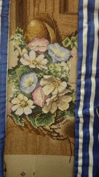 Приятно видеть работу напарника. Пускай небыстро, но ведь главное процесс. То удовольствие, которое испытываешь от вышивки, как бы это ни банально. У меня он тоже третий , точнее второй. Есть основной, по вечерам дома и запоем в выходные. Второй -на работе, в обед пять дней по часу -полтора. И дорожный третий, в пути шью что то шерстью от риолиса-немелко и несложно.