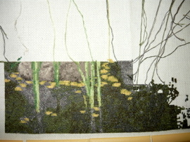 Доброго всем времени суток! Решилась на процесс приличных размеров. Перебирала ждущие своего часа наборчики, посмотрела в глаза этой девушке, и решила я ее оживить, чтоб не скучала. О наборе. Размер 45 на 30,6 см, канва № 18 Zweigart, ниточки Madeira. Всего 49 цветов, 47 чистых (крест в 2 нитки) и 16 блэндов (крест 1+1). Вышивается всё крестиком в 2 нити, бэк тоже в 2 нити. Полная зашивка, схема на 8 листах. Начала вышивать, за неделю отшила первый лист, и недели на 3 забросила. Сейчас снова принялась за работу, очень хочется порадовать "грустную девушку", но что-то без энтузиазма получается. Сейчас пока цвета темно-зелёных оттенков в основном, скорее бы до светлых оттенков дойти, веселее пойдёт (надеюсь). Может кто-нибудь ещё присоединится? Процесс идёт быстрее с компанией. Вот начало процесса.