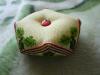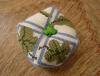 Как нельзя кстати пришлись и пуговички овечки, ну просто родные тут! А у лягушки бегают глазки, смотрится очень забавно. Овечки, орнаменты вышиты шерстяным мулине. Многим оно не нравится, но тут очень к месту оказались.