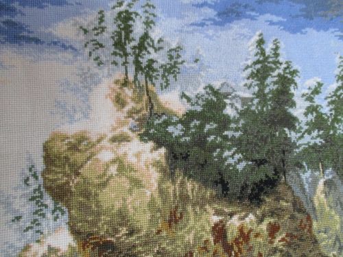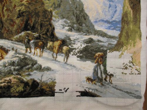 Есть, что показать - правая скала почти готова, на очереди спутник девушки с тюком и собачкой. Почему-то картинки при размещении получаются больше, чем в других сообщениях форума, подскажите, если делаю что-то против правил. Очень жаль, что многие фото исчезли из сообщений, хотелось бы посмотреть на отшивы, их так мало в сети или не умею их искать. -