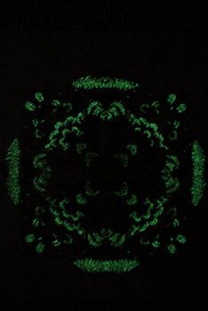 Приятного времени суток всему вышивальному миру. Хочется показать свои вышитые работы. Итак, первая работа - мандала "Тайны ночного леса". Вышивалась легко и быстро. Из стежнов только крестики и 3/4, ну и счетный контурный бэк. После отшитой половины работы схема мне уже была не нужна. Рисунок симметричен и легко воспроизводился без помощи схемы. В работе добавила крейник и светящиеся ниточки. Получилось, что работа сверкает и переливается днем, а ночью светится. Канва аида 16, изначально была белой, но мне показалось это скучным и я покрасила ее в тон работе. Получилось, будто вышивка парит отдельно от основы.