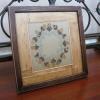 Вышивала на Lugana-32 салатного цвета в 2 ниточки по ключу, почти что :) Дома нашлась подходящая по размеру рамочка, но совсем не подходящего цвета- золотого. проблему эту я быстренько решила, покрасив и состарив рамочку :) вот теперь все выглядит так как мне хотелось :)